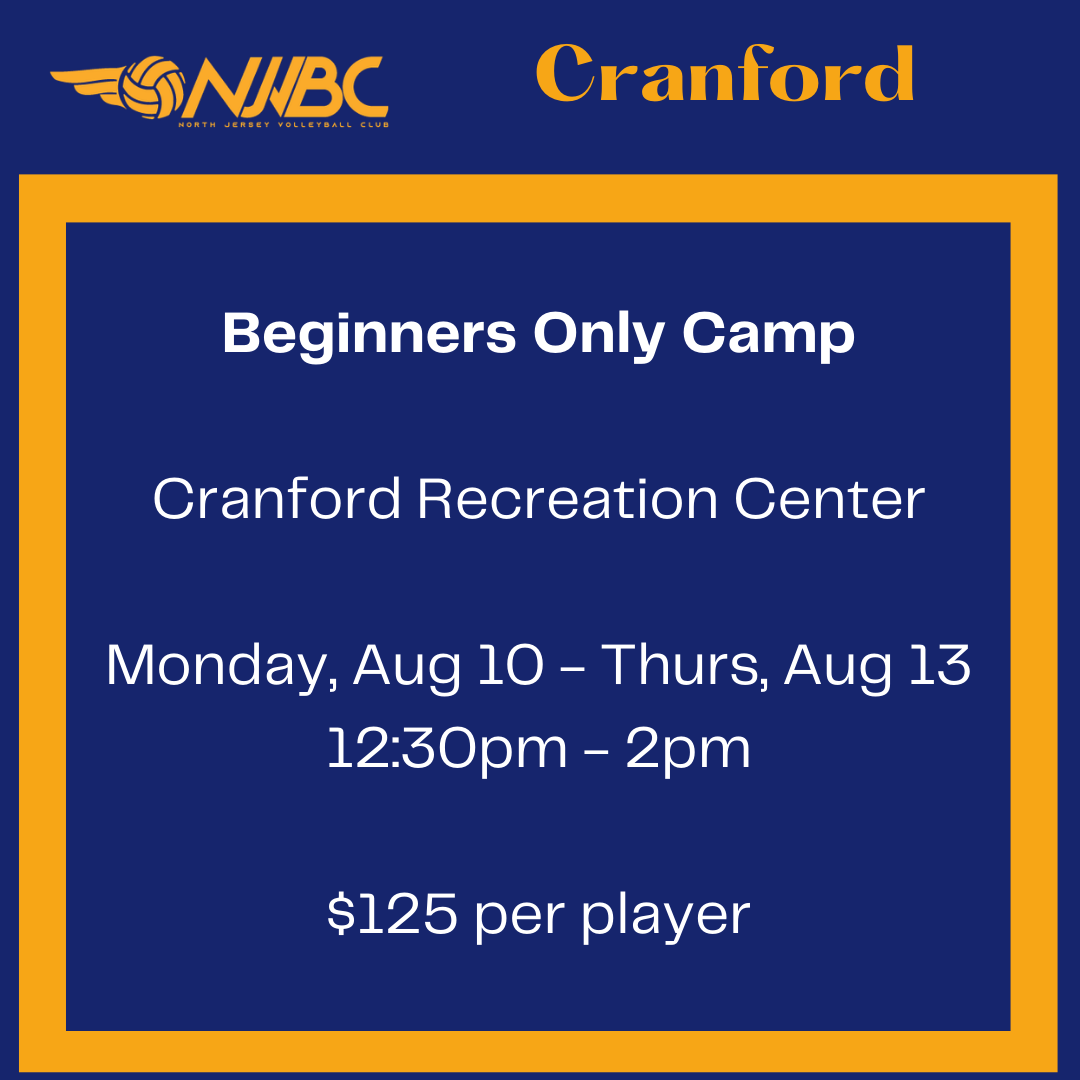 Cranford – Indoor – Beginners Only Camp – Aug 10-13 (12:30PM – 2:00PM)